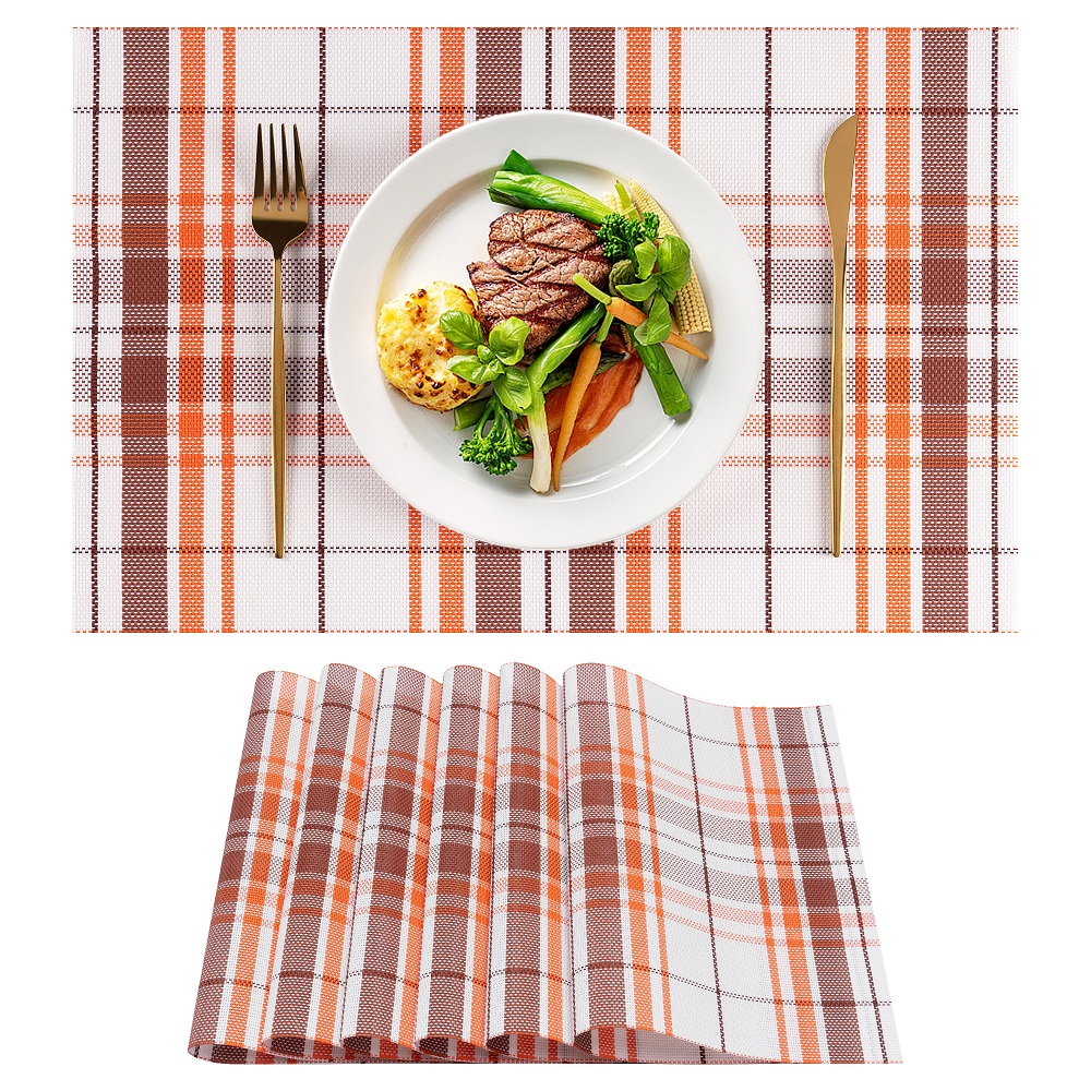 Elevate your dining experience with the VCVCOO placemats set of 6. Crafted from durable PVC material, which is very hard and shaped, you have the freedom to customize it according to your preferences. These placemats are stain-resistant, washable, and heat-resistant up to 176°F(80°C). Also it's convenient for you to storage them, you can roll it up to save more space when not use. The elegant plaid design adds a touch of sophistication to your table, while the non-slip and wipe-clean features make them perfect for both indoor and outdoor use. They can even be used in table drawers and refrigerator shelves. Suitable for a variety of occasions, including Christmas, Thanksgiving, weddings, and family gatherings, these versatile placemats are a fantastic addition to your home decor.