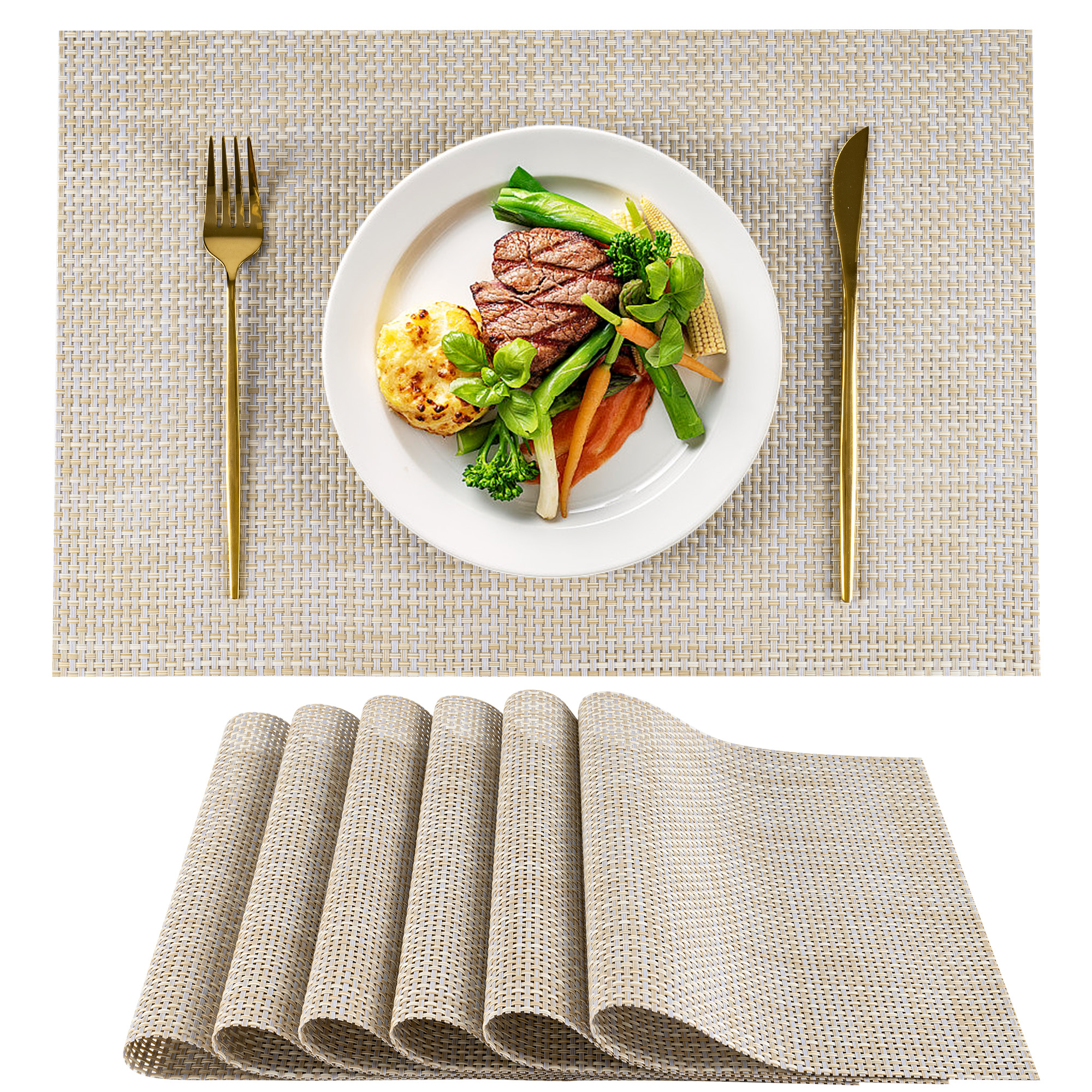 VCVCOO placemats are made of high quality 70% vinyl and 30% polyester fiber, safe to contact with food directly. Ultra-durable, UV resistant, fadeless for both indoor and outdoor long-term everyday use. The PVC fiber is woven precisely and hot-pressed, can be cut or bent freely without raveling. They can be customized into various shapes, serving as coasters or vase mats. Our placemats are thicker than normal, have a better heat-resistance & skip-resistance performance. Easy to clean, hand wash or wipe clean, dry quickly, never crisp, fade or deform. With their elegant design and functional features, they make an ideal gift for housewarmings, weddings, parties, and special occasions. Neutral woven texture suits farmhouse, modern, or rustic decor. Elevate your dining experience for holidays or casual meals.